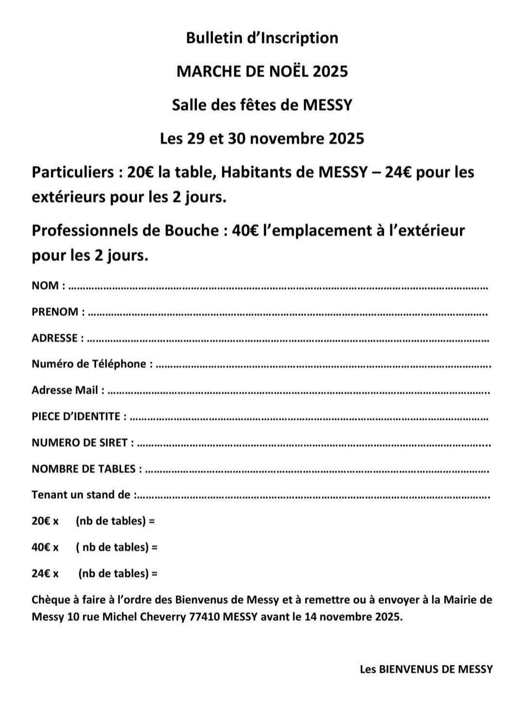 Habitants de Messy → 20€ la table