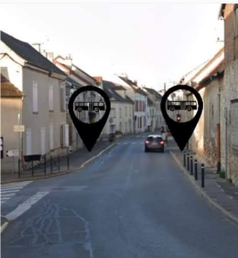 Le point d'arrêt "Mairie" sera donc remplacé temporairement par un arrêt RUE DE CHARNY non loin de la Mairie (voir photo jointe).