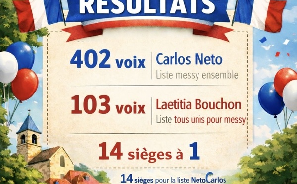 Les habitants de Messy se sont exprimés aujourd’hui lors des élections municipales. Nombre de personnes inscrites sur les listes électorales : 833 Résultats : • Carlos Neto – Liste Messy Ensemble :...