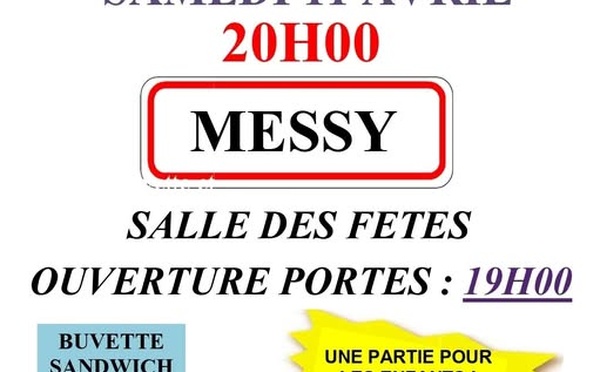 L’ ASM vous donne rendez-vous pour une soirée conviviale et pleine de surprises ! Samedi 11 avril Début du loto : 20h00 Ouverture des portes : 19h00 Salle des fêtes de Messy De nombreux lots à...